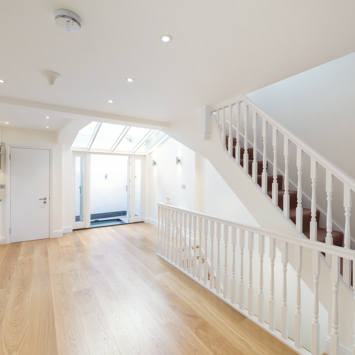 Internal alterations to existing building at ground and first floor level including construction of a glazed conservatory, Installation of structural glass floor plates, oak floor finishes and decoration throughout. Design, supply and installation of fitted furniture including Bookcases and Kitchen. The entire area was developed by the renowned philanthropist Sir Walter Godfrey for the benefit of destitute local labourers who until that time had lived in unsanitary shared family housing.